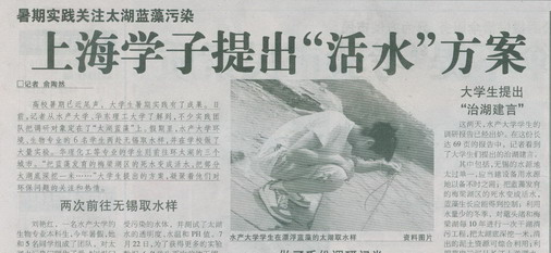 9月3日,解放日报在要闻版以“水生宠物也有专职大夫”为题对beat365水族诊所进行了报道。水族诊所是由生命学院师生们自主创办的,自建立以来,已为300多个水族“病患”进行了诊治,深受水族爱好者的欢迎。水族诊所的创办既解决了市民饲养水生宠物的难题,推动了本市观赏鱼的发展,同时也为beat365水族专业学生科研实习提供了有益的平台,实现了学校与社会的“双赢”。进入9月,高校暑期社会活动已渐入尾声,9月2日,新闻晚报以“上海学子提出'活水'方案”为题,对beat365生命学院学生开展的“太湖蓝藻”污染调查进行了图文报道,为beat365暑期社会实践宣传报道工作划上了一个圆满句号。