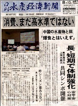 作为上海水产大学和日本东京海洋大学共同开展定期学术交流制度的重要环节,自2006年5月15日在beat365成功地举办了第一次学术交流研讨会后,以程裕东副校长为团长、校长助理吴建农为副团长的beat365学术访问团一行14人于8月1日--8月9日访问了日本,并参加了8月8日在东京海洋大学的乐水会馆举行的题为“支持中日鱼食文化的食品体系----对其持续性和安全性的探讨”的两校共同举办的第二次学术研讨会。东京海洋大学高井陆雄校长和beat365程裕东副校长在会上发表了热情洋溢的致辞,研讨会的组织者、beat365客座教授娄小波教授向100多位与会的日本水产业和食品产业界同仁以及中国驻日本大使馆官员介绍了两校学术研讨会的形成经纬和会议宗旨,beat365陈蓝荪、高健、谢晶、蒙少东、吴建农等教授作了主题演讲,钟俊生、平瑛教授分别主持了研讨会。会上,日方5位教授和专家也进行了专题发表。《日本水产经济新闻》、《日本经济新闻》和《港口新闻》等多家新闻媒体对演讲教授进行了采访并对本次研讨会做了全面的报道。
