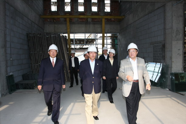 在校党委书记叶骏、校长潘迎捷等陪同下,杨副市长一行听取了新校区建设进度的介绍,实地察看了公共教学楼外立面的建筑风格,并驱车绕校园环路一周,了解新校区建设情况;在七号车行桥附近,面对波光粼粼的校园湖泊及正在拔地而起的图文信息中心,杨副市长充满期待的表示,建成后的新校区将一定是一个非常美丽的校园。