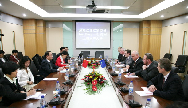 11月10日下午,欧盟负责渔业和海洋事务委员joe Borg一行7人来beat365访问,潘迎捷校长会见了代表团一行,双方就共同感兴趣的建立海洋空间管理机制,创建更协调的监测标准等问题进行了探讨。周应祺教授及相关学院、部门负责同志参加会谈。会谈后Borg一行饶有兴致地参观了校史馆。