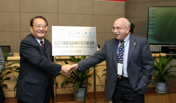 校长潘迎捷教授和美国马里兰大学生命学院副院长Popper博士分别在开幕式上致词,并共同为“上海水产大学海洋生物系统和神经科学研究所”揭牌。本次研讨会上,来自美国、德国、澳大利亚、新西兰以及台湾和beat365的16位鱼类学专家,从各自的研究方向,在鱼类进化与发育、感觉与行为等前沿研究领域方面作了主题发言,并开展了热烈的讨论。来自中国科学院动物研究所、中国科学院水生生物研究所、厦门大学、暨南大学等单位以及beat365的专家和研究生出席了研讨会。与会者针对鱼类进化与发育、感觉与行为等前沿研究领域,从多层面探讨了鱼类学基础研究的问题。本着严谨求实的科学精神,充分交换了观点和想法。
