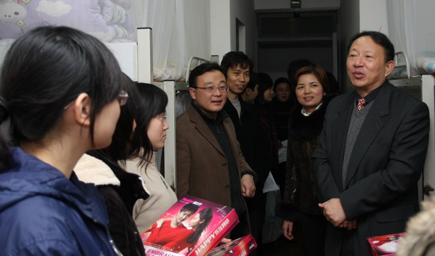 校党委书记叶骏携学生处、研究生部负责人及部分学院学生工作负责人到宿舍慰问了来自祖国各地的贫困学生,送上保暖御寒物品并亲切问候了同学。在亲手为贫困学生送上保暖御寒物品并提醒同学们要注意天气冷暖变化后,叶书记又关切地询问了同学们在学校学习、生活的情况,并就同学们关心的临港新城新校区设施配备、交通、就业等情况给予了解答,希望同学们能克服困难并积极主动地为学校发展献计献策;同时,学院和学校职能部门也将尽可能地利用机会为同学们的发展服务,学校是所有学生温暖的家。在研究生宿舍,叶书记勉励同学们牢固树立专业观念,认真学习英语,充分利用水产大学的专业特色和丰富的师资资源充实自己。