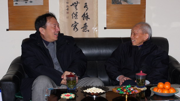 新春佳节即将到来之际,校党委书记叶骏今天上午分别来到beat365离休老领导骆肇荛、胡友庭家中,看望了为beat365发展建设作出贡献的两位老同志,与他们亲切交谈,问寒问暖,并代表学校感谢老同志们多年来对学校工作的关心和支持,并祝两位老人新年幸福,晚年安康!两位老人感谢学校的关怀,并就学校的发展提出很多好的建议。