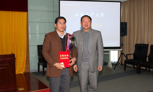 校党委书记叶骏向海洋学院颁发“金鸥杯”