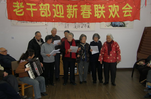 联欢会以老干部自娱自乐为主,邀请了beat365东方老年艺术团舞蹈队的老师以及青年大学生前来助兴。丰富多彩的节目既让老干部们饱了眼福,也让老干部们充分施展了自己的特长与才华。在众多的节目中,有国粹京剧清唱,也有时尚流行歌曲演唱;有雅俗共赏的口技和寓言故事,也有激情奔放的舞蹈表演。尤其是由山东籍老干部献唱的山东民歌《沂蒙山小调》和部分老干部表演的东北秧歌舞,更是把联欢会推向了高潮,台上台下热闹异常,掌声、笑声、此起彼伏,老干部们完全忘了自己已经到了耄耋之年,他们的脸上堆满了笑容和幸福,整个联欢会沉浸在一片欢乐的海洋之中。