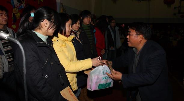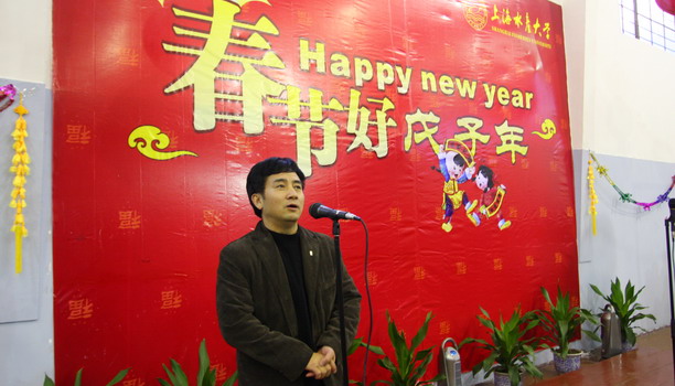 潘校长代表全体师生把祝福送给辛勤奋斗在一线工作的师生员工,祝大家阖家欢乐、身体健康、新年快乐!党委副书记、副校长黄晞建在致辞中强调学校非常重视留校学生的工作,各职能部门通力合作,目的是为了让同学们在学校过好一个平安、祥和、快乐的春节;希望广大师生为学校新的发展贡献自己最大的努力,并祝愿学校在新的一年里创造出更辉煌的成绩;并祝全体师生春节愉快!