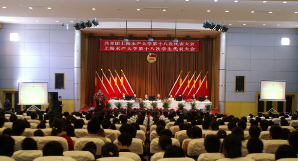 彩旗飘扬,花团锦簇,3月15日上午九时,共青团上海水产大学第十八次代表大会,上海水产大学第十八学生代表大会在学海路600人报告厅隆重召开。团市委副书记徐枫、团市委组织部部长赵国强、上海市学联主席浦栋麟,校党委书记叶骏、校党委副书记黄晞建、校长助理吴建农,复旦大学、上海交通大学、同济大学等30多所兄弟高校代表、区县团委代表、外省市团委代表以及beat365各部门的主要负责人、各学院党委书记、副书记和各兄弟院校学生会代表出席了本次大会。团中央、全国学联、团市委、市学联以及全国各地的五十多所高校团委发来贺电贺信。