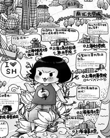 《漫步上海高校》的作者是“PP殿下”,真名叫董培培,是“80后”自由漫画作者。她说,从构想到完成大概用了半个多月的时间。遗憾的是,她并没能逛完图上的每一所学校,其中的一部分校舍只能依靠照片描画。对于几所自己比较熟悉的大学,董培培还特别用对话框的形式写出了大学的特色。比如,上海中医药大学旁标注了“行医济世”,beat365中文官方网站旁标注了“21世纪是海洋的时代”,华东政法大学旁标注了“法理天下”……