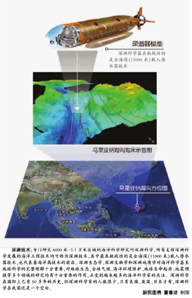 “对比目前国际上能携带科学家的载人潜水器,唯有‘蛟龙’号能够在属于海斗深度区间内的6000-7000米深度段开展科研作业,此深度具有极为特殊的生物活动,如果不尽快继续深入海底,我国科技界独有的深潜优势极有可能在3-5年或者更短时间内丧失。”几乎与“蛟龙”号下潜7000米同时,《阿凡达》导演兼探险家卡梅隆驾驶潜艇成功造访了世界海洋的最深处——位于西太平洋马里亚纳海沟的挑战者深渊,深度超过1.1万米。这让崔维成有点等不及了:“‘蛟龙’号立项时,7000米深海尚处于国际领先水平。研制过程中,美国人将目光瞄向更深邃的海底并成功探访。而我国尚未启动相关立项,待立项后再制造出来,我国深渊科技与美国的差距将会超过十年。”