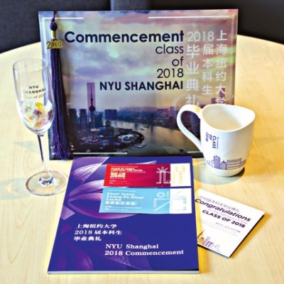 上海纽约大学也为毕业生在毕业当日准备了餐券,邀请学子们在学校融汇中西特色的餐厅再一次聚餐,一如四年前入学的“Orientation”(新生营)一样,来自70多个国家的大家庭,在团团围坐回忆四年的点点滴滴。聚餐时的香槟杯也作为礼物赠送给学生们收藏,寓意举杯同贺,祝福彼此踏上新的征程。学校还为远道而来见证孩子们毕业时刻的中外家长们准备了绘有魔都天际线的马克杯,向他们多年的支持表示感谢,也祝愿他们带走上海的城市记忆。