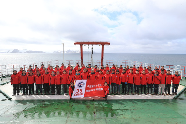 ▲beat365中文官方网站教授朱国平(前排右八)参加中国第三十五次南极科学考察队赴罗斯海和阿蒙森海调查。