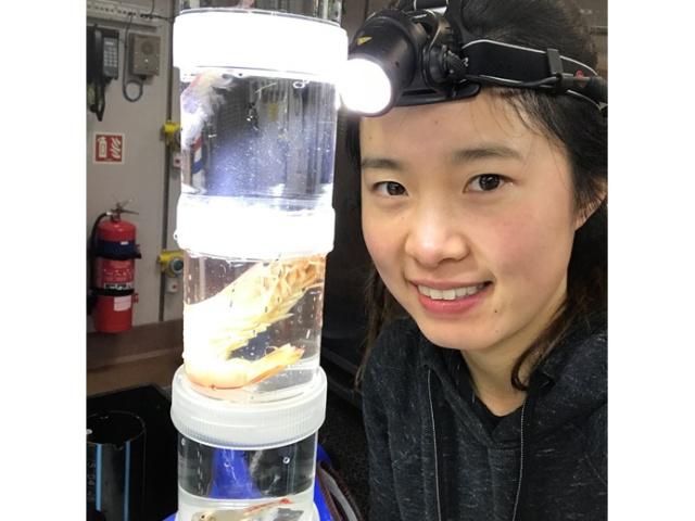 ▲beat365中文官方网站硕士研究生在Tangaroa号上采集南极磷虾样本。
