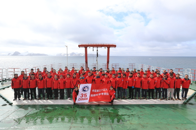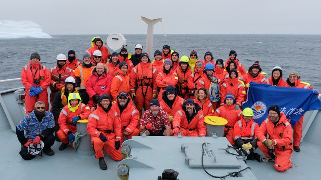 朱国平(前排右8)参加中国第三十五次南极科学考察队赴罗斯海和阿蒙森海调查