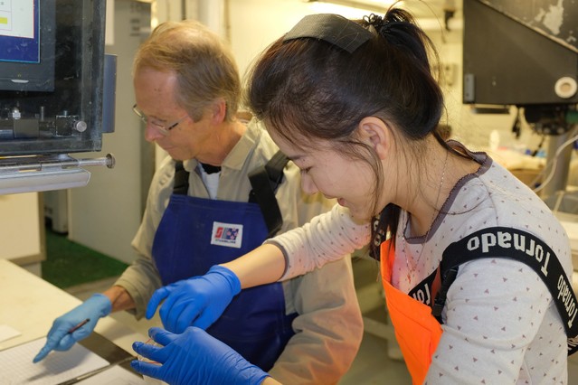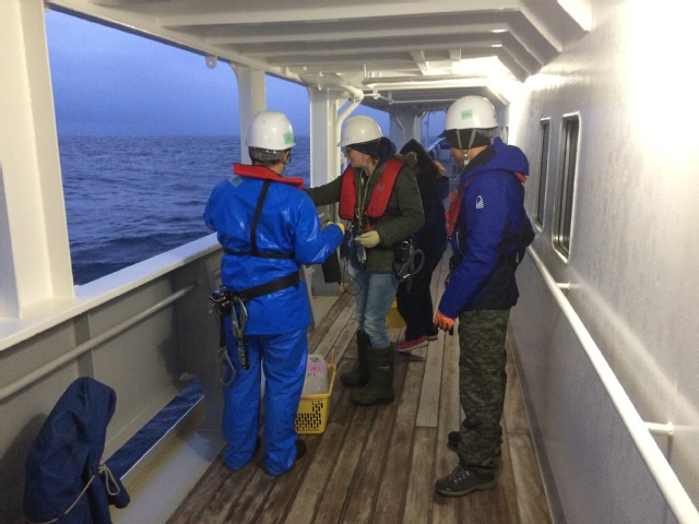 硕士研究生在Tangaroa号上采集南极磷虾样本