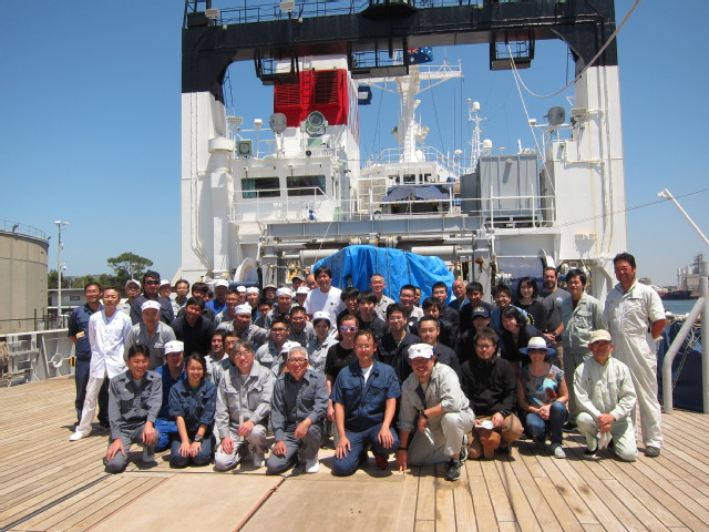硕士研究生杨清源(后排右4)与开洋号科研人员合影