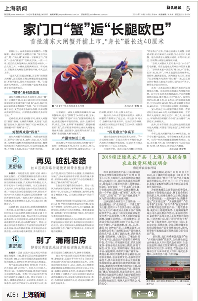 浦东农业农村委有关负责人介绍,下一步还将继续推广示范点的科学养殖经验,扩大浦东大闸蟹的养殖范围,让更多老百姓品尝到“家门口”舌尖上的美味。