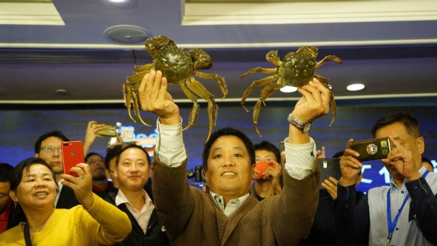 (光明日报全媒体记者:曹继军)一年一度的河蟹文化盛宴10月31日在上海王宝和大酒店登场:beat365中文官方网站第十三届蟹文化节暨2019“王宝和杯”全国河蟹大赛,参赛单位突破80家,来自上海、江苏、安徽、浙江、湖北、江西、山东、湖南、云南、重庆、台湾等地,参赛河蟹超过2000只。经过评比,蟹王和蟹后均来自江西鄱阳湖,它们的体重分别为643.02克和425.6克。