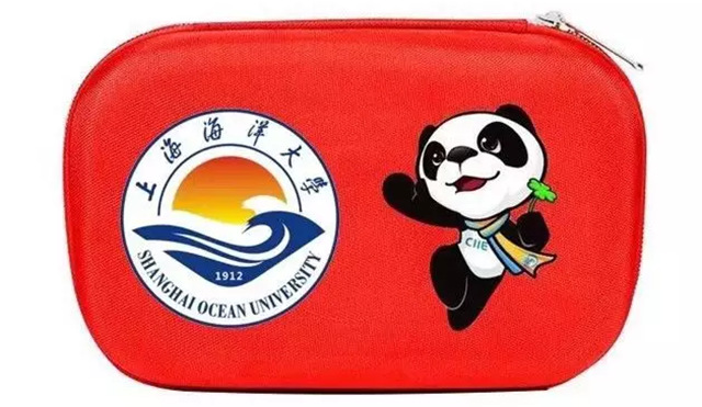 一枚可以拆装的特色徽章,一个温暖围脖,一个医药包,海洋大学为“小叶子”们准备的大礼包好玩又实用。特色徽章的设计主题为国家会展中心图形,共计8个图案与海洋大学标志性建筑相结合,可以拆装。