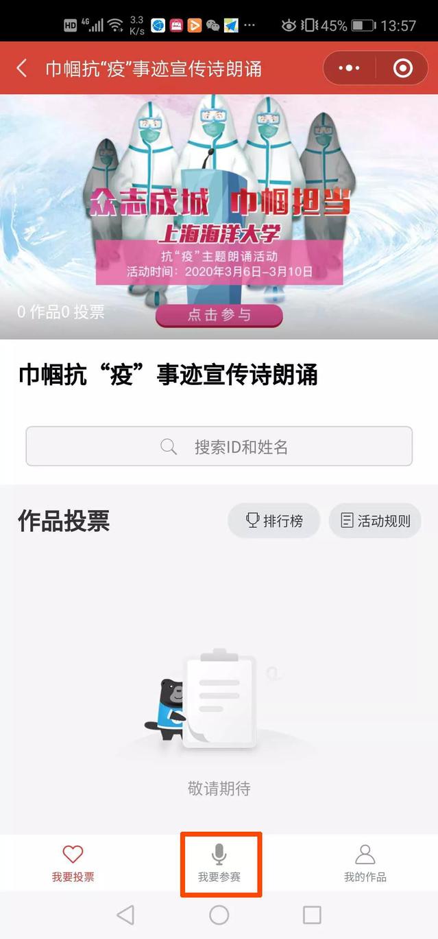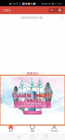 登录进入用户主页后,从首页banner图可进入诗歌朗诵活动界面;