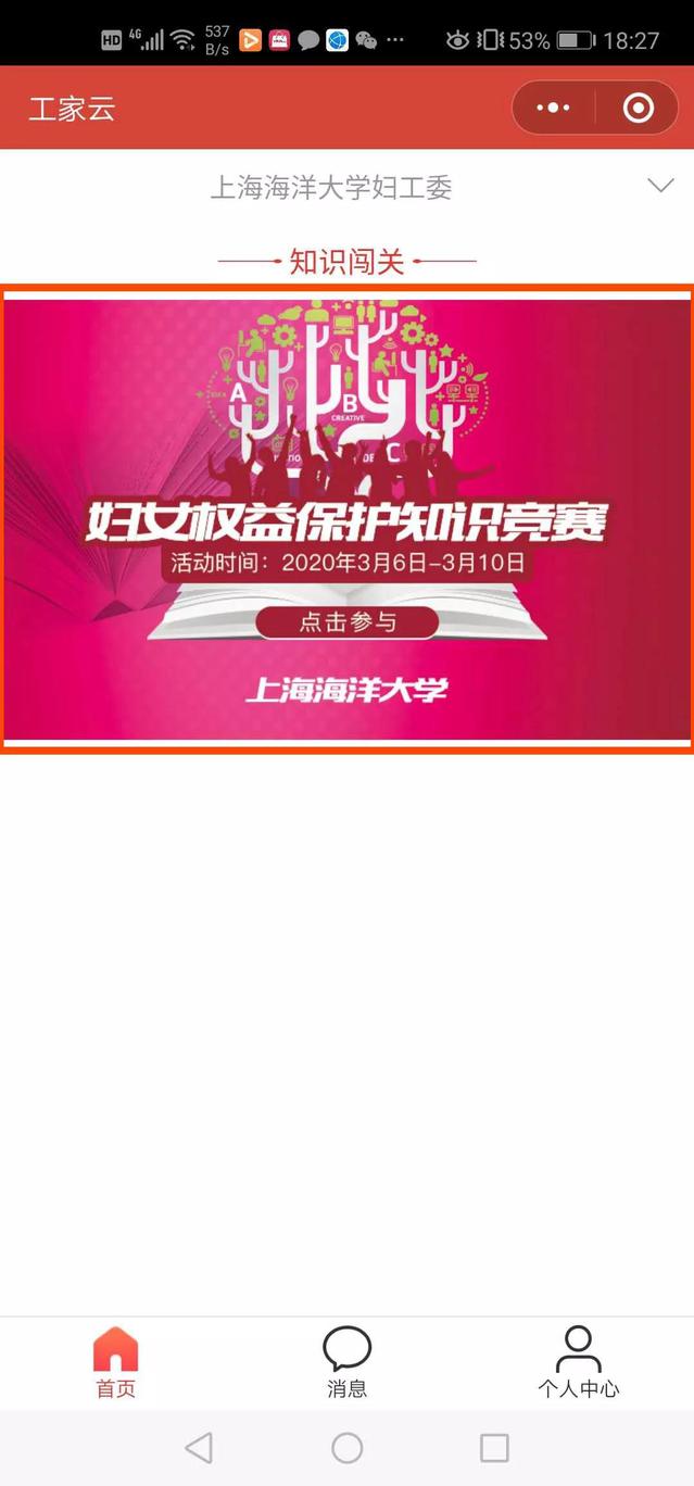 登录进入用户主页后,从首页banner图可进入知识答题活动界面;