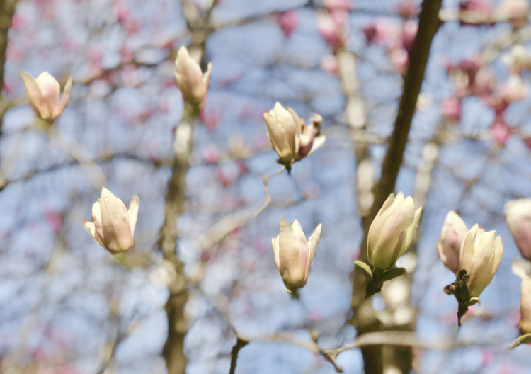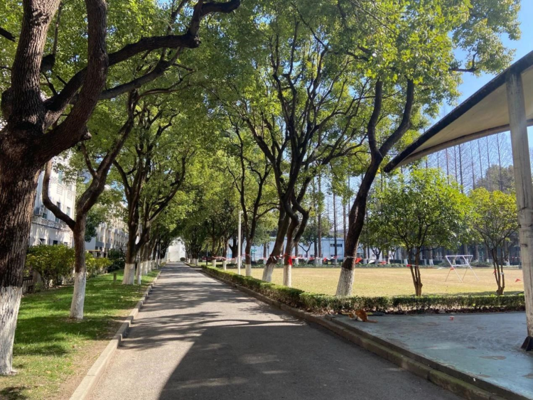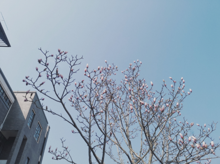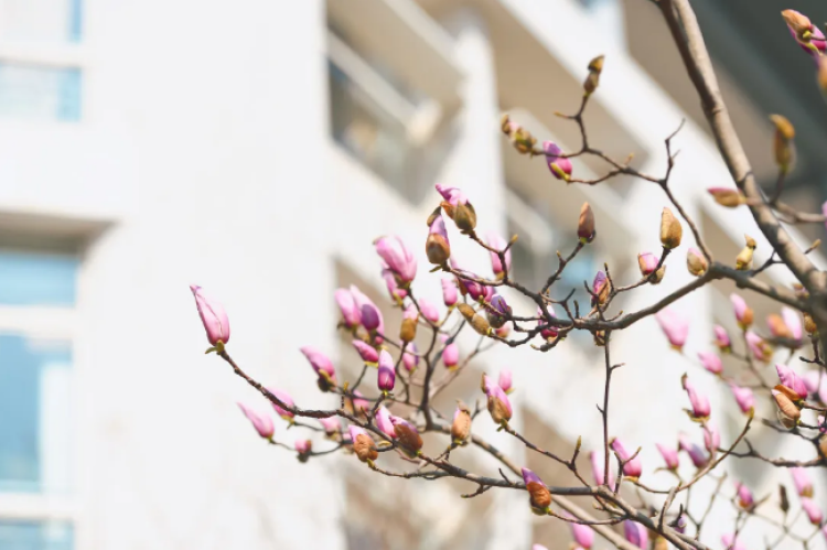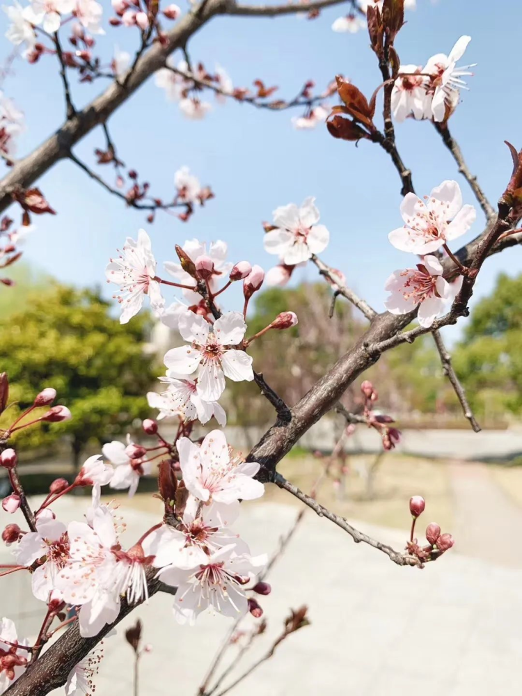 没有了来来往往的行人,校园静静地如期迎来绽放。