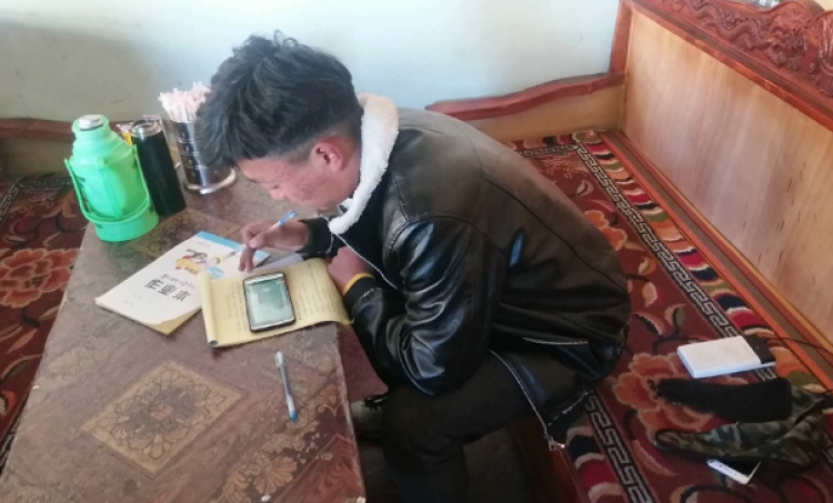 由于家住西藏偏远地区,网络信号较弱,直播上课总是时断时续,有时候甚至直接断网,旦增群培每天早上从家里出发,到达网络信号较好的的亲戚家联网学习,日复一日,他已经坚持了整整一个月。