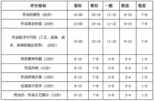 决赛评审标准,满分为110分(附加分10分),具体指标如下: