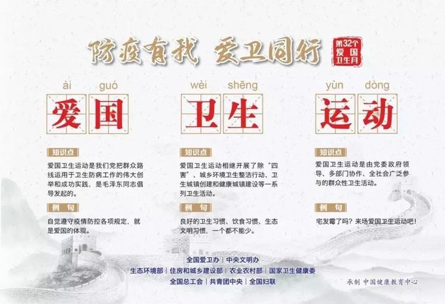 2020年4月,是我国第32个爱国卫生月,为深刻贯彻落实习近平总书记系列重要讲话精神,深入开展爱国卫生运动,助力打赢疫情防控阻击战,全国爱卫办等九部门向全社会发出《动员广大群众积极参与爱国卫生运动倡议书》充分发扬爱国卫生运动优良传统,切实保障人民群众的生命安全和身体健康。值此爱国卫生月之际我们号召全体beat365人积极参与爱国卫生运动巩固疫情防控成果,继续贡献自己的力量,为复工复学护航,特向全体师生发起倡议,一起行动起来: