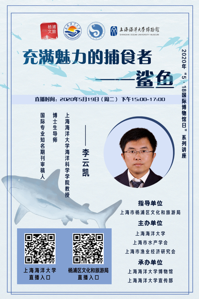 海洋面积占地球表面积的三分之二,海洋环境变化和生物资源的波动对人类社会有着显著的影响。鲨鱼是仅存最古老的有颌脊椎动物之一,属于软骨鱼类,其在生物系统进化中的独特地位和在海洋生态系统中的重要作用,鲨鱼越来越受到公众关注。鲨鱼作为顶级捕食者,处于海洋食物链的顶端或近顶端,它们资源变动对海洋中其他生物的生存、种群数量变动以及对整个海洋生态系统都会产生巨大影响。任何一种生物,要想在地球长期生存,没有一点绝招是绝对不行的。正因如此,研究和了解鲨鱼生存绝招,往往能为人类带来诸多启示。李云凯教授将从鲨鱼的物种多样性、身体构造以及它们的海洋中的角色和科学研究及保护等方面给大家带来不一样的鲨鱼世界!