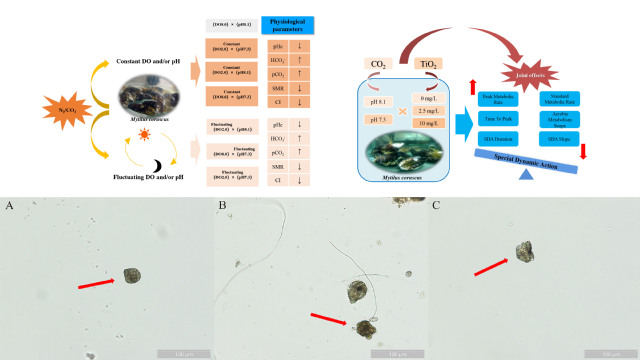 研究发现酸化和缺氧对贻贝的早期发育具有明显的负面影响。但低氧对受精率没有影响。在实验过程中观察到酸化和缺氧之间的显着相互作用,短期暴露虽然会对贻贝的早期发育产生不利影响,但未影响其生存。而在酸化,缺氧和升温三种复合胁迫下,贻贝消化相关的淀粉酶,脂肪酶,胰蛋白酶,海藻糖酶和溶菌酶活性受到显著影响。在缺氧和高温条件下,贻贝消化腺各消化酶活性表现出下降趋势,溶菌酶活力在短期暴露下表现出显著增加,而在长期暴露后降低。研究结果表明海洋酸化,升温和缺氧可能会损害贻贝的消化功能,从而影响贻贝对海洋环境变化的适应能力。