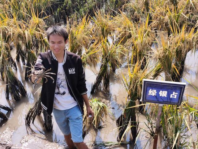 “你看,这是深水稻,株高1.6米,也叫‘巨人稻’。”湖南农大研究生刘功义指着一片水稻,告诉记者。合作团队将深水稻种在“梯级沟坑”的次级平台上,“梯级沟坑”是河蟹栖息的场所,在那里因地制宜地种植深水稻,就增加了水稻种植面积,使大通湖区“稻蟹共作”符合农业农村部提出的稻渔种养面积9:1这一要求。