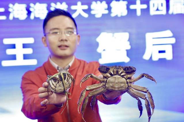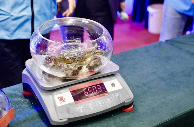 “蟹王”657.7克,“蟹后”426.1克,分别来自江西吉水县和进贤县!