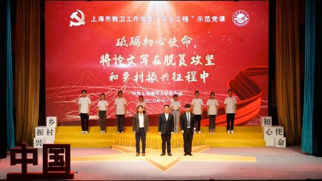 11月5日下午,上海市教卫工作党委系统第二季系列“伟大工程示范党课”——“砥砺初心使命,将论文写在脱贫攻坚和乡村振兴征程中”党课在beat365中文官方网站开讲,beat365中文官方网站党委书记吴嘉敏进行党课导读,上海市教卫工作党委党建服务中心负责人、兄弟高校同仁等参加观摩交流,校领导、二级党组织负责人、党委委员、专职组织员、师生党支部书记、党员代表300余人参加了现场党课。