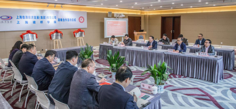 2019年11月,上海建桥学院与临港经济发展(集团)有限公司签订全面的校企合作战略框架协议。在此基础上,双方还签订了共建临港新片区产业大学、人才培养基地、实践基地合作等3项二级合作协议;“产学合作人才培养基地”“上海临港高技能人才培养基地”“就业实践基地”也于当天揭牌成立。合作双方将整合临港政、校、企资源,以创新的人才体制机制,积极落实习近平总书记对临港新片区提出的“五个重要”,推进全方位、深层次、高水平的对外开放。