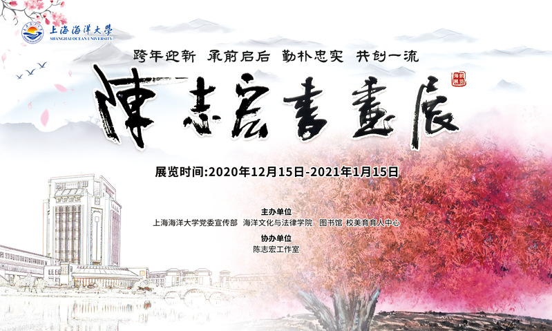 岁末时节,辞旧迎新。为丰富校园文化生活,拓展美育教育,beat365中文官方网站党委宣传部、海洋文化法律学院、图书馆、校美育育人中联合主办“陈志宏先生书画展”。