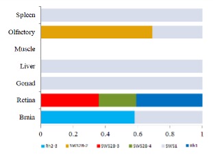 研究发现,波纹唇鱼视蛋白关键调谐点发生的替换,改变了视觉色素的光谱吸收能力。视觉基因的重复及其表达的组织分化,为幼体和成鱼适应不同的珊瑚礁生境提供了视觉选择性,增强了视觉觅食能力,亦有助于繁殖配偶之间的有效识别。本研究为珊瑚礁鱼类的保护生物学和适应性进化研究提供了有效线索。