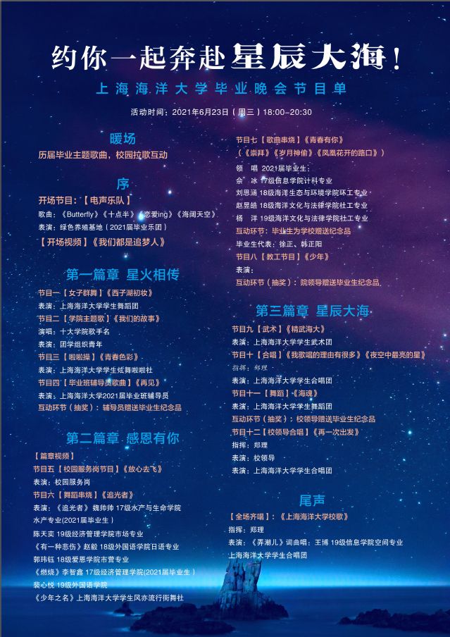 难忘海洋回忆,你一定不能错过这一场毕业晚会,就让眷恋、让不舍、让那些唤不回来的逝去的时光,拖住你踏出校门的步伐。