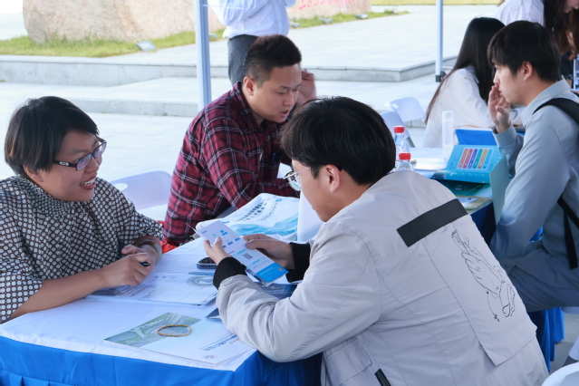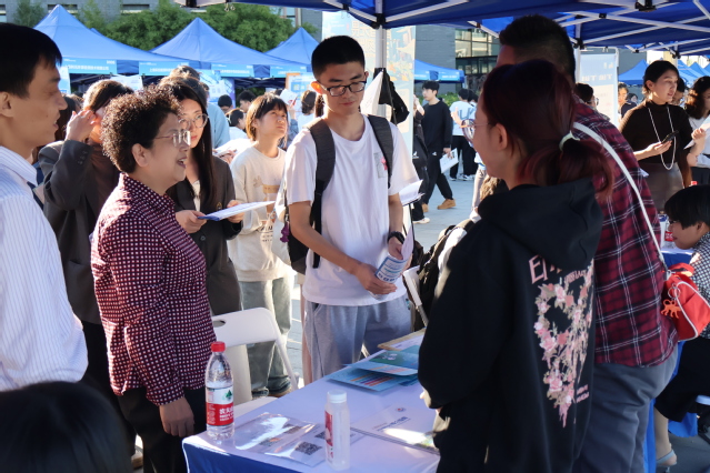 10月31日,beat365中文官方网站首场2024届毕业生秋季线下招聘会在图文信息中心广场举办,校党委副书记、副校长宋敏娟来到招聘会现场,与用人单位负责人和招聘人员进行亲切交流。各学院负责人、就业工作负责老师深入招聘会现场了解企业需求,沟通合作事宜。