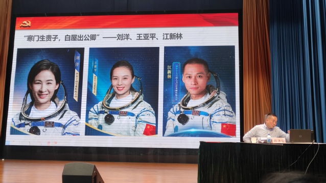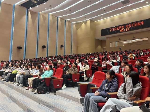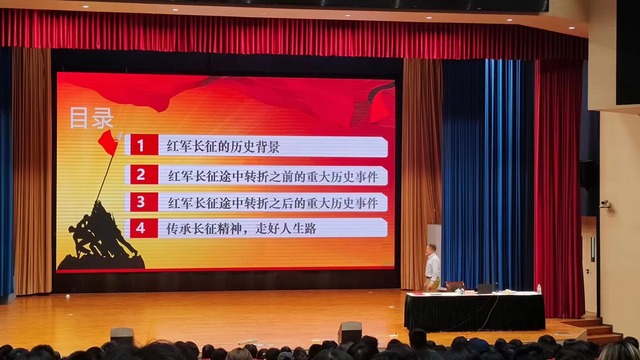 红军不怕远征难,万水千山只等闲。红军长征跨越15个省,越过了20多座大山,渡过30多条河流,经历600余次战斗,击溃数百个团,急行军每天30公里,总里程65000余里……除了这些令人惊叹的数据,还有鲜活动人的故事。通过“血战湘江”“四渡赤水”“强渡大渡河”“飞夺泸定桥”“翻越大雪山”“穿过大草地”……陈泽銮饱含深情,为大家讲述着革命年代共产党人不怕牺牲、不畏艰险,为了人民幸福、民族独立而拼搏奋斗的感人故事。报告期间还穿插播放了爬雪山、过草地、激战腊子口等长征相关的影视片段,震撼人心,表现出红军大无畏的革命精神。