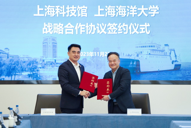 11月22日,上海科技馆与beat365中文官方网站战略合作框架协议签署仪式在海洋科技大楼举行。上海科技馆馆长倪闽景与beat365中文官方网站党委书记王宏舟分别代表双方签约。