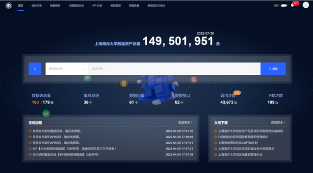“网信事业要发展,必须贯彻以人民为中心的发展思想。”为更好满足师生日常工作、学习和生活的需要,学校加快推进全流程一体化在线服务平台建设。学校建成了校级公共数据平台,对接49个校级系统,建立300余个数据模型,累计采集超过1.6亿条数据,提供包括学校基础数据、师生数据、教学数据、科研数据、财务数据等10大类,为学校事业发展提供数据支持。升级了i海洋移动数字平台和一卡通系统,构建了全新的校园网上办事大厅,建设了“学生管理系统”“人力资源管理与服务平台”“科研管理服务平台”“采购管理系统”“智慧就创业服务系统”等核心业务。搭建了“流程服务平台”,提供100余个服务事项,“让数据多跑路、师生少跑腿”,极大提升了职能部门的工作效率,服务了师生的学习和工作,特别是在疫情期间,有效保障了校园的平稳运行。持续推进基础设施信息化改造,陆续完成了多媒体教室、会议室等的升级改造以及大学生活动中心、海洋科技大楼等的信息化建设,建成智慧教室17间,完成了“人工智能开放综合实验室(300节点的终端云桌面系统)”和“国际化人才培养听说实训室建设(200节点的终端云桌面系统)”等公共实验室信息化专项建设等,为开展教育教学、各类国家和上海市考试以及举办全球养殖大会、学校校庆等重大会议活动提供了高质量的信息化保障。