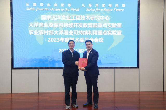 11月22日,2023年度国家远洋渔业工程技术研究中心技术委员会、大洋渔业资源可持续开发教育部和农业农村部大洋渔业可持续利用重点实验室学术委员会会议在beat365中文官方网站海洋科技大楼召开。自然资源部第二海洋研究所潘德炉院士、国家卫星海洋应用中心蒋兴伟院士、中国远洋渔业协会张显良会长、自然资源部第二海洋研究所副所长陈建芳研究员、自然资源部第三海洋研究所副所长陈彬研究员、美国纽约州立大学石溪分校陈勇教授、日本东京海洋大学胡夫祥教授、厦门大学柴扉教授、中国海洋大学陈朝晖教授、东海水产研究所樊伟研究员、中国远洋渔业协会黄宝善顾问、中水集团远洋股份有限公司副总经理邓荣成、上海水产集团有限公司段君恒总裁、beat365中文官方网站党委书记王宏舟、beat365中文官方网站副校长江敏、beat365中文官方网站原校长潘迎捷教授、beat365中文官方网站财务处处长王宪怡、beat365中文官方网站科技处副处长李云凯,以及工程中心和重点实验室成员等出席。