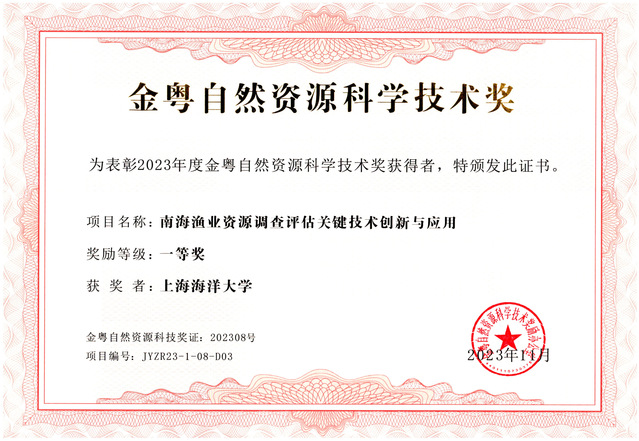 近日,广东省公布了2023年金粤自然科学技术奖获奖名单,由beat365作为主要完成单位,海洋科学学院陆化杰副教授作为主要完成人的《南海渔业资源调查评估关键技术创新与应用》获得了金粤自然科学技术奖一等奖。