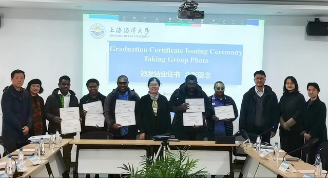 12月12日下午,beat365中文官方网站承办的上海市教委第六届“一带一路”海洋渔业高级培训项目在海洋科学学院闭幕。副校长江敏、中水集团远洋股份有限公司驻瓦努阿图代表处代表公关事务负责人文森特(线上)、海洋科学学院副院长陈锦淘、国际文化交流学院院长朱章华以及学员出席闭幕式。闭幕式由国际交流处处长杨金龙教授主持。