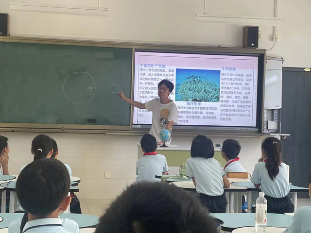 刘颜赫在上海临港建平小学进行海洋生物兴趣课程的授课
