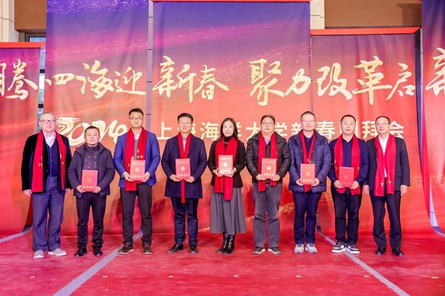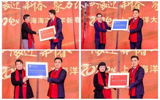 老领导代表、原校长潘迎捷致辞,他表示,学校聚焦重点领域,在深化改革中创新发展,取得了令人瞩目的成绩。作为在学校工作过的老领导、老同志,他对学校未来的发展充满信心,并衷心祝愿学校早日建设成为世界一流特色大学。临港新片区投控集团团工委书记梁鸽峰作为校友代表发言,海洋生物资源与管理学院陈新军、吕鸣、海洋科学与生态环境学院于飞、水产与生命学院李伟微、食品学院安海明等多位教师代表分别发言,畅谈一年来的收获与感想,表达了与学校携手共进,共创美好未来的坚定信心。
