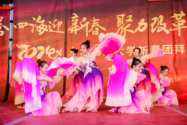 团拜会上,校东方老年艺术团、校学生舞蹈团及师生代表们分别演出了歌曲联唱《好运来》、舞蹈《如愿》《梦长安》《紫金流云》、音乐表演秀《锦绣中华》、三句半《喜迎2024》、合唱《这世界那么多人》《思念》等精彩节目。全体校领导与演员合唱《再回首》,现场温馨而浪漫。