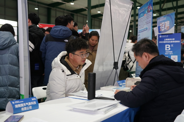 招聘会现场气氛热烈,企业招聘展位前排起了长队。舟山中远海运重工有限公司、上海知从科技有限公司等3家企业现场与毕业生签订三方协议和见习协议。