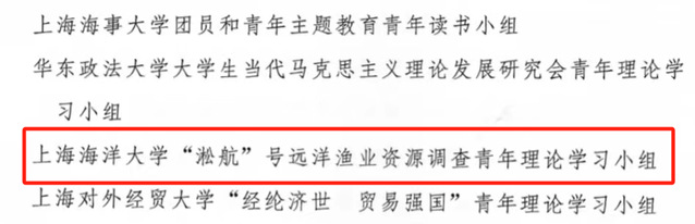 “淞航”号远洋渔业资源调查理论学习小组以“淞航”号科考船为载体,依托青年师生科考团队,将团员和青年主题教育与学科特色充分融合,组织开展理论学习、小组研讨、经验分享等10余次。同时,通过建立海上临时团支部,夯实理论学习组织形式,成立甲板讲师团,面向2023级本科生团支部,开展甲板上主题团日全覆盖,累计开展宣讲10余次。此外,小组成员克服航海困难,勇担使命,做到在学中练、在学中用,累计航行100余天,行程近1万5千海里,设计、完成实验数100余次,开展科研课题10余项。科考活动受到央广网、新民晚报等外宣报道4次。