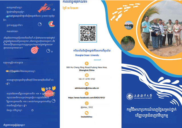 项目组编写的柬埔寨文版“beat365中文官方网站水产养殖专业本科留学生奖学金项目”招生简章